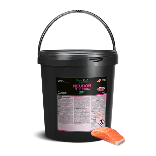 Esca rodenticida in pasta fresca pronta all’uso a base di Bromadiolone. Aromatizzata al salmone.